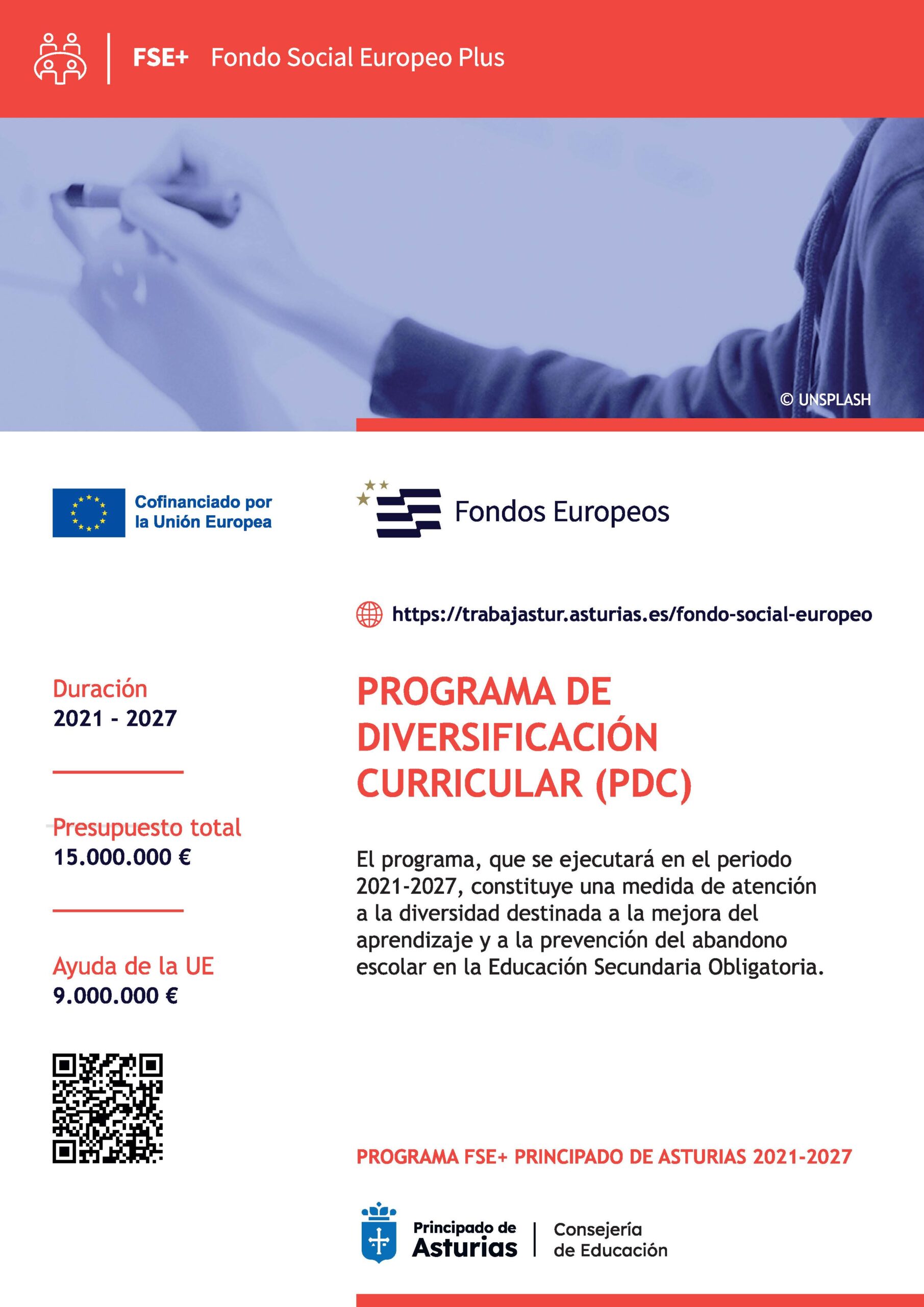 La implantación del Programa de diversificación curricular (PDC), está prevista dentro del Programa del Fondo Social Europeo+ del Principado de Asturias 2021-2027, incluida en la Prioridad 3 “Educación y formación”, objetivo específico f).